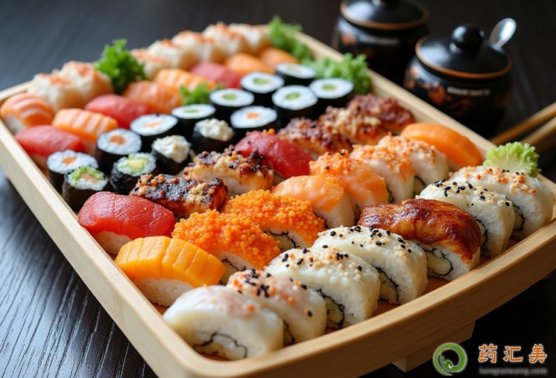 藥匯美溫馨提醒:魚類壽司含蛋白質、水、脂肪、碳水化合物、鈉、鉀、鈣、鎂、磷、鐵、鋅、錳、維生素A、膽固醇等,蔬菜壽司還包含多種維生素和膳食纖維。