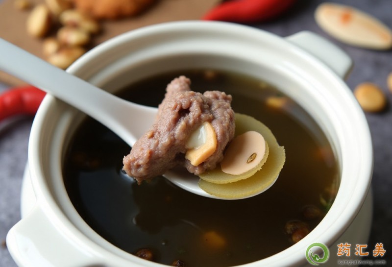 狗肉性溫,能暖脾溫腎,牛鞭味咸、性溫、入腎經,能補腎壯陽、益精補髓,人參性平、味甘、微苦,微溫,大補元氣,復脈固脫,補脾益肺,生津止渴,安神益智。