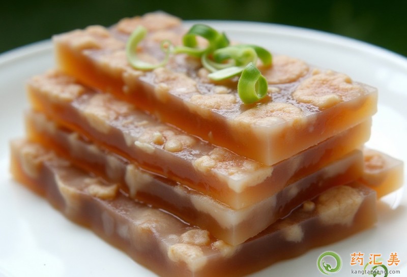 豬皮中豐富的膠原蛋白能促進皮膚細胞吸收和貯存水分,防止皮膚干癟起皺,使其豐富飽滿平整光滑;彈性蛋白,能使皮膚的彈性增加,韌性增強,血液循環(huán)旺盛,營養(yǎng)供應充足,皺紋舒展,變淺或消失,皮膚顯得嬌嫩、細膩、光滑。